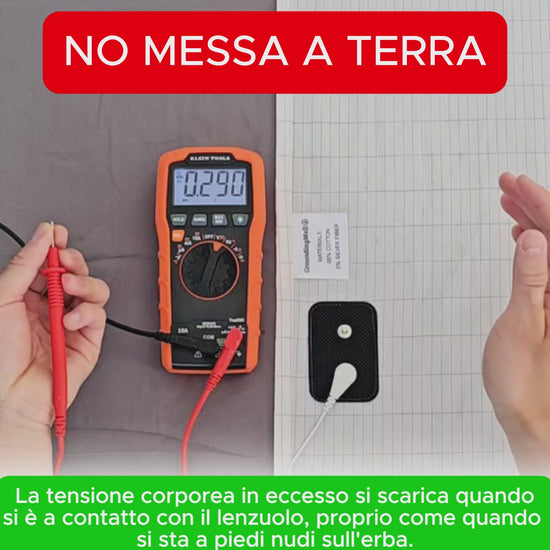 Il grounding è un fenomeno 100% naturale e sicuro, adatto a ogni età - dai nipotini ai nonni. È come camminare scalzi sull'erba bagnata di rugiada, ma dal comfort del tuo letto. Nessuna elettricità fluisce verso di te: al contrario, quella "cattiva" fluisce via.